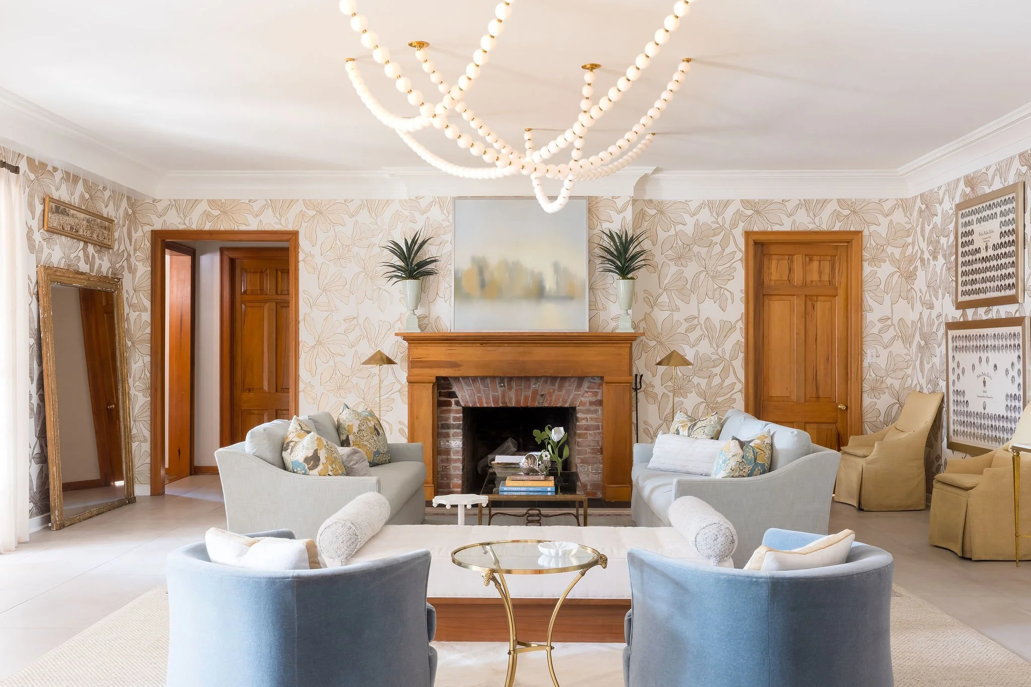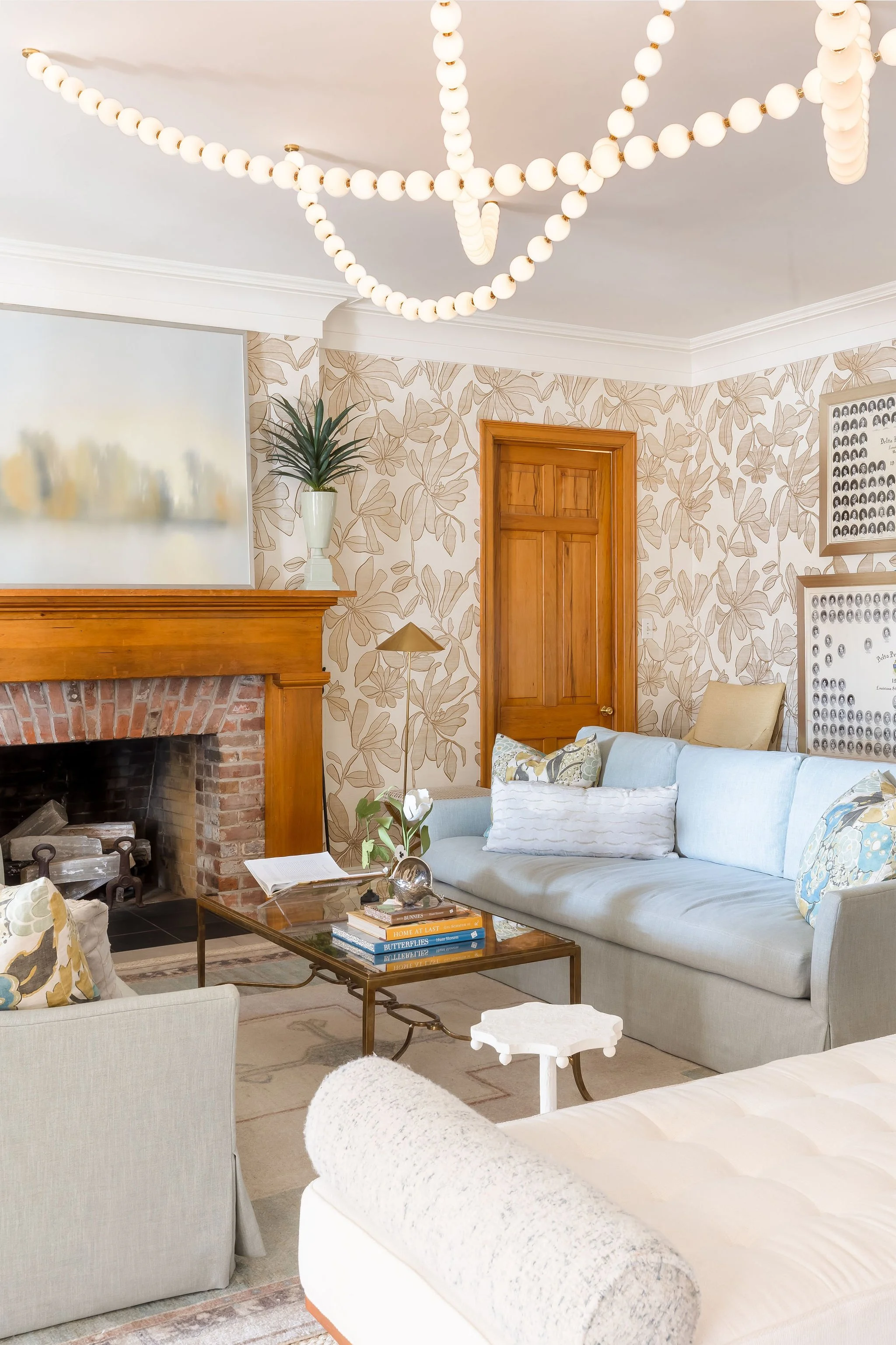 This project for the Tri Delta Sorority House at LSU was designed to create a welcoming, polished, and timeless environment where members can gather, study, and build lasting memories. Blending classic Southern charm with fresh, modern details, each space was thoughtfully curated to feel elegant yet comfortable for everyday living. Soft palettes, layered textures, custom furnishings, and statement lighting bring warmth and sophistication throughout the house, while durable materials ensure the spaces function beautifully for busy student life. From inviting lounge areas to cheerful dining spaces, the design reflects the grace, tradition, and vibrant sisterhood of Tri Delta while giving the chapter a home they can be proud of for years to come.